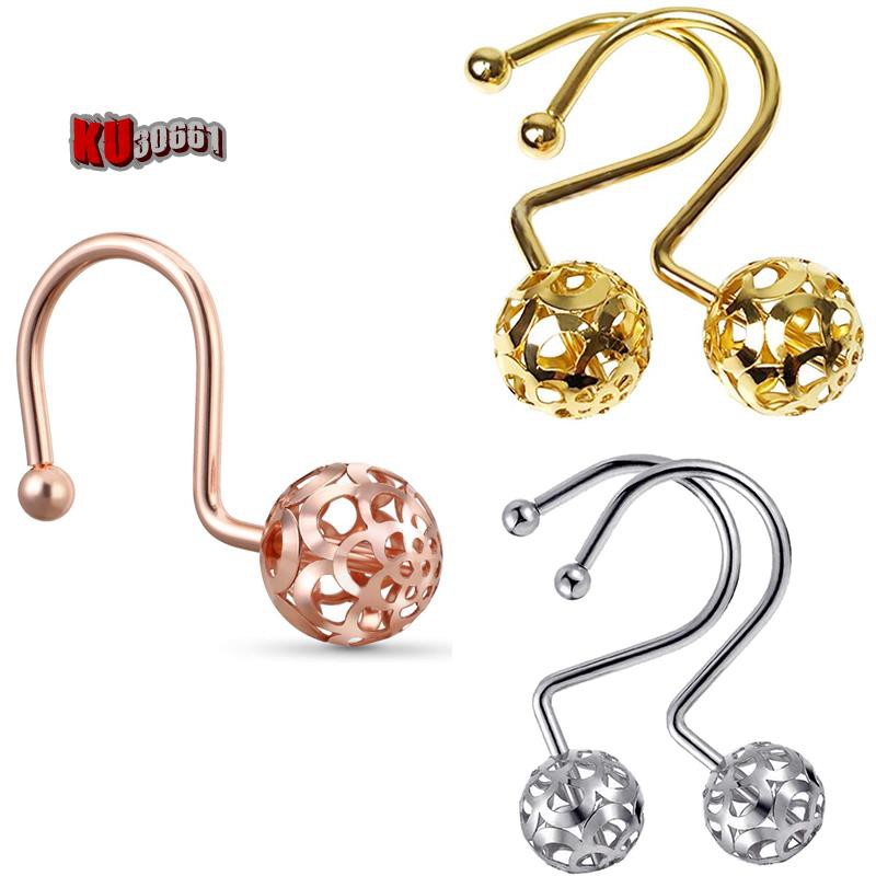 Gold shower curtain rings hooks decorative hollow ball design metal curtain rod hangers pothook 100% rustproof for bathroom 12pc ckapestore 4 out of 5 stars (20) $ 1999 free shipping add to favorites more colors picasso jasper shower curtain hooks, handcrafted set of 12, natural stone picture, brass/gold roller ball grey sand khaki caramel gold shower curtain hooks. Enhance your shower curtain with the curtain hooks.